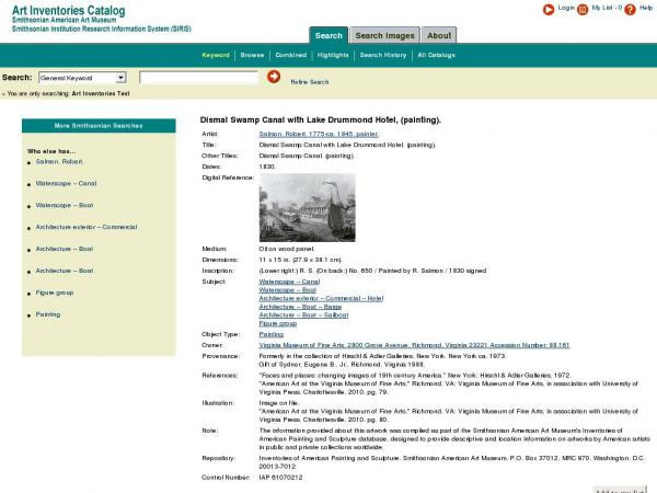 Delete Resource - Dismal Swamp Canal with Lake Drummond Hotel, (painting)
